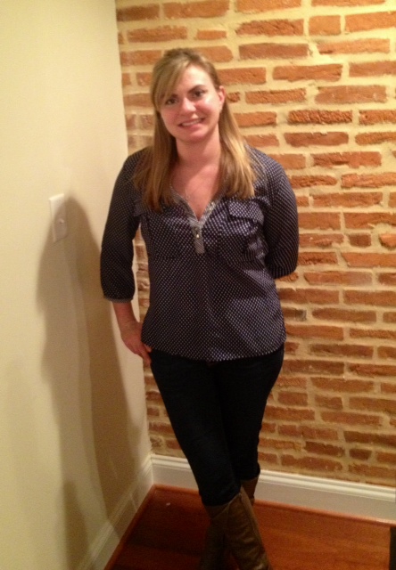 KENDRICK POLKA DOT FRONT POCKET BLOUSE: Not my normal style, but I thought this was pretty cute. I do love polka dots and dark blue. It was cute, but the buttons popped open really easily. I think a medium would fit better.
