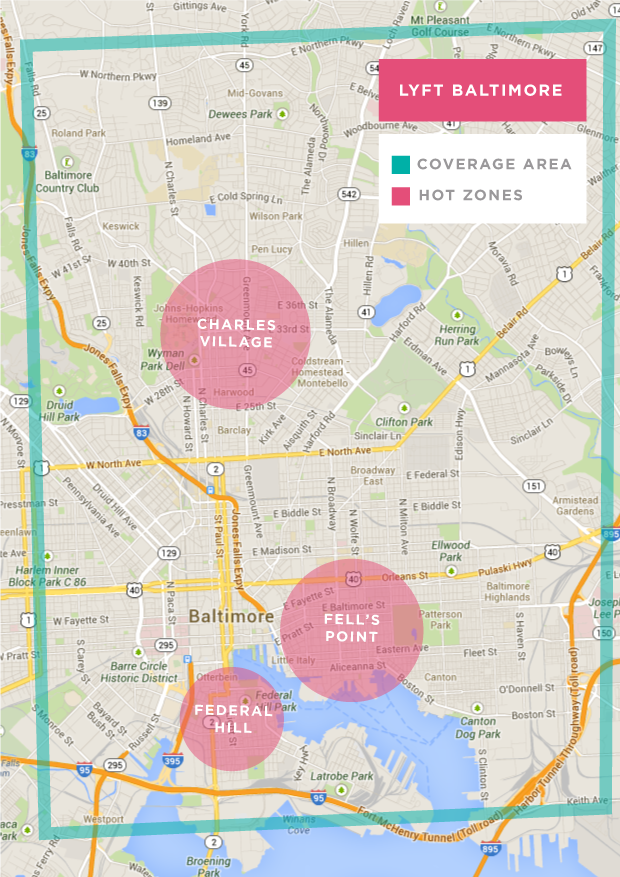 • Lyft is the new guy in town and just launched in Baltimore in October, so they’re eager to compete with Uber. (You may still be able to use code SOUTHBMORE for $20 off your first ride.)