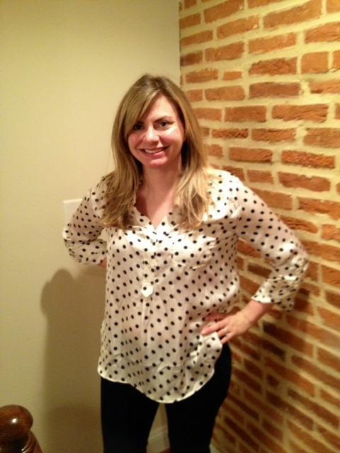 BROOKE DOT PRINT TAB SLEEVE BLOUSE ($38)