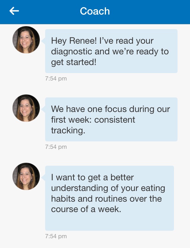 Kerry is my MyFitnessPal coach. I decided to fork over $50 for this monthly service so that someone would be watching over me and commenting on my daily noms/workouts.