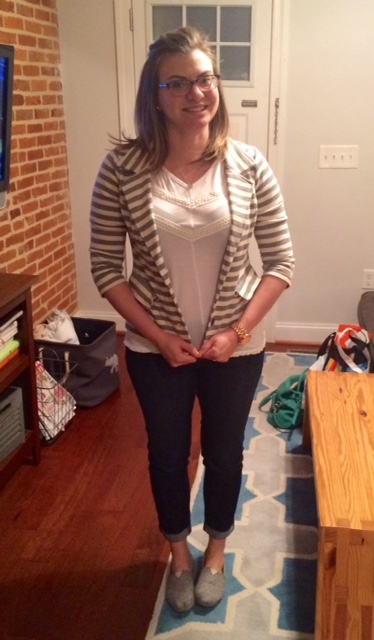 It didn’t start off horribly. This top was just kind of blah and had weird crocheting that hit in odd places. I could also find it at Target for like $20, I think. I liked the blazer at first sight, but it was too short on and hit awkwardly at my hips. It was also terry, which I don’t love and certainly wouldn’t pay $72.