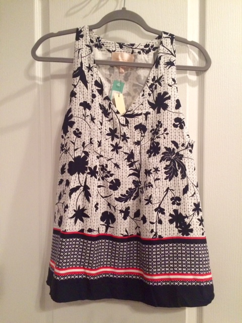 I LOVE THIS. The pattern is so cool and I love that it’s mostly black and white — my favorite combo — but has some color at the bottom. Unfortunately, the arm holes were really large and the top was so loose that it made me look pregnant.