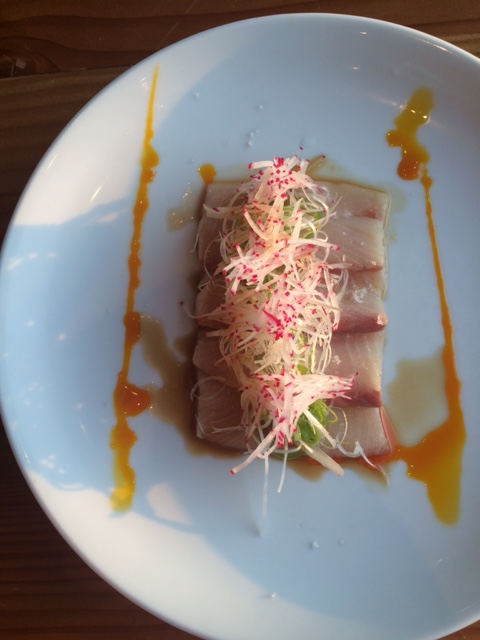 I love grilled seafood, so we also sampled the grilled octopus (ichimi tamari, myoga, cherry tomatoes, mitsuba, achiote & tarragon oil, shiso, chives). It was chewy, exactly as I like it. The king crab legs were good but not our favorite and the octopus and pink grapefruit was deliciously acidic. The yellowtail jalepeno with yuzu garlic soy, achiote oil, and Tokyo leek was a favorite for both of us.