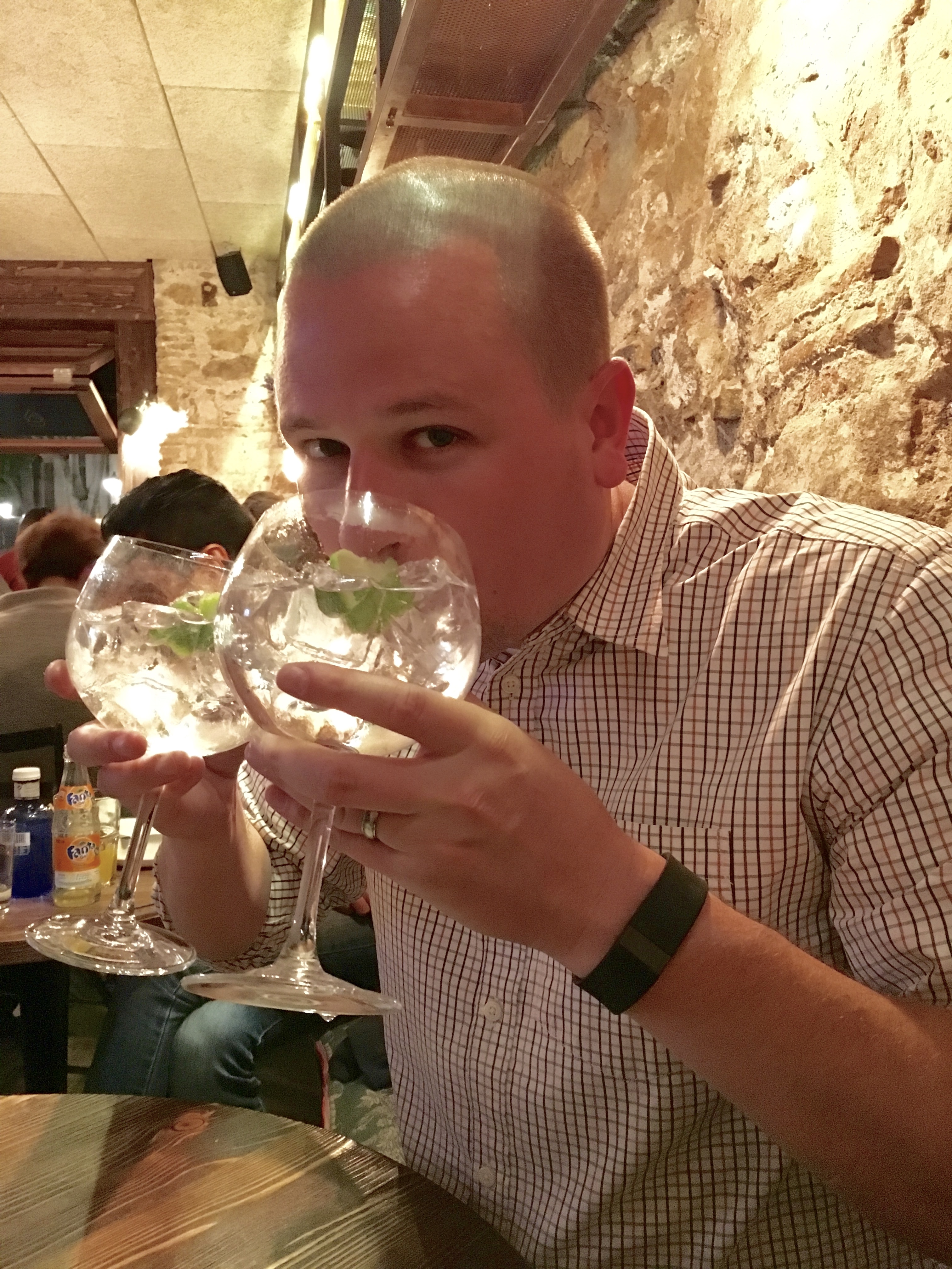 We went back to the apartment to rest before dinner and then went to Bon Sant for dinner. There was an amazing eggplant with goat cheese and delicious pan con tomate (which we ordered almost everywhere), but I can’t find a website for the restaurant to share it. After dinner, we stopped at Santagustina for drinks. We both ordered gin & tonics, which Steve had been told were large, but these were MASSIVE. Truly, they were like fishbowls. I couldn’t finish it, but if I had, I would’ve been hammered.